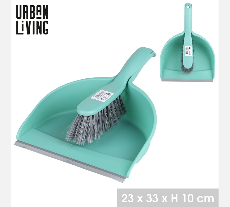 Ensemble pelle et balayette vert.