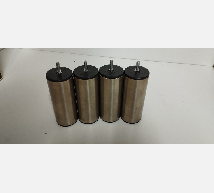 Jeu de 4 pieds de sommier en inox massif. Hauteur 15 cm.