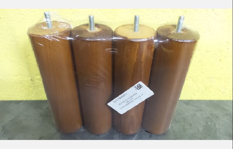 Jeu de 4 pieds Merisier de sommier tapissier H 20cm Ø 6 cm.