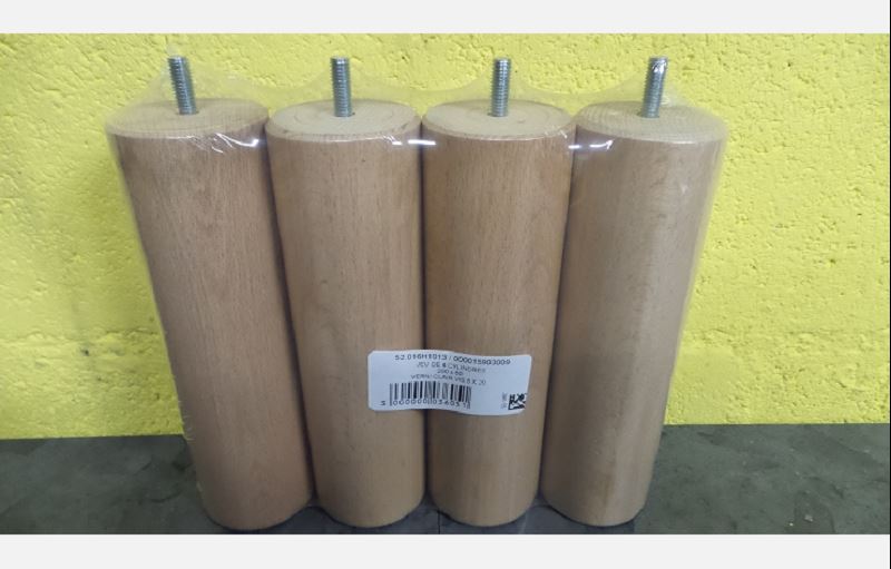 Jeu de 4 pieds Naturel de sommier tapissier H 20cm Ø 6 cm.