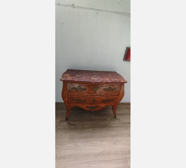 Commode style Louis XV dessus marbre rose, 2 tiroirs.