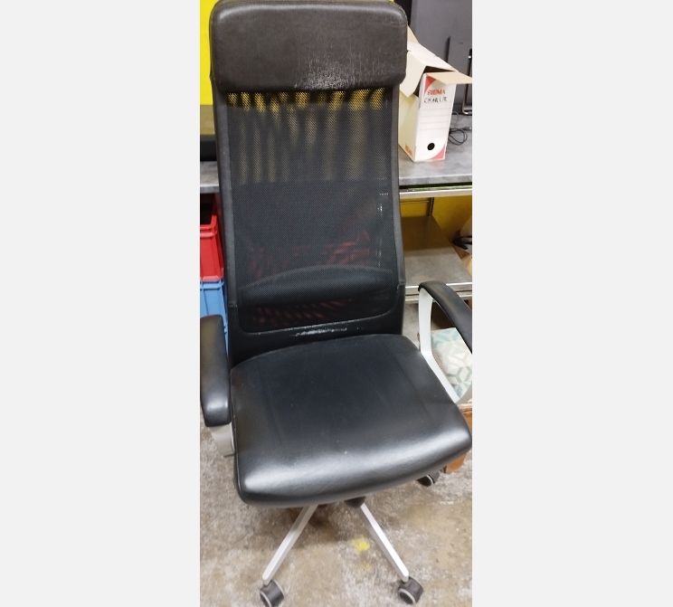 Fauteuil de bureau en cuir noir.