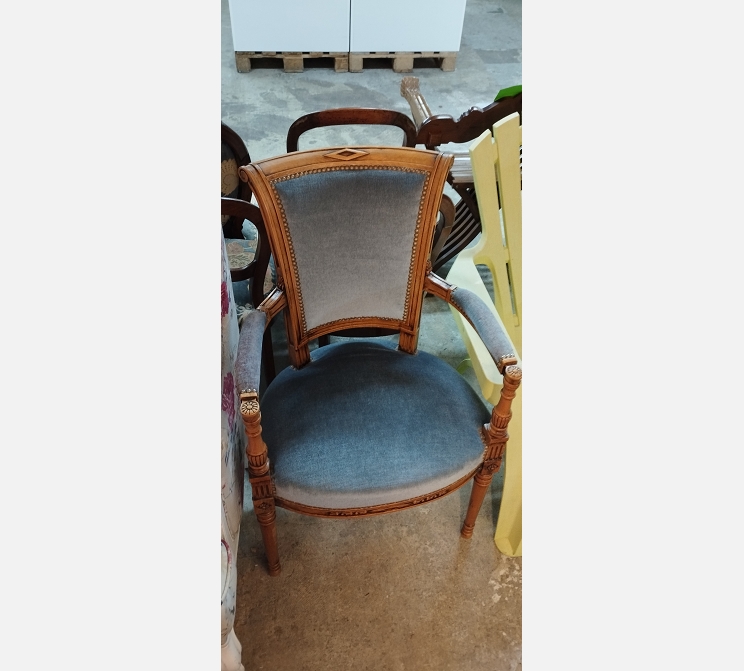 Joli fauteuil style Louis XVI Directoire en velours bleu.