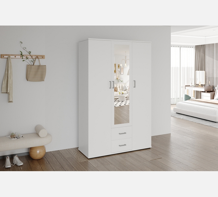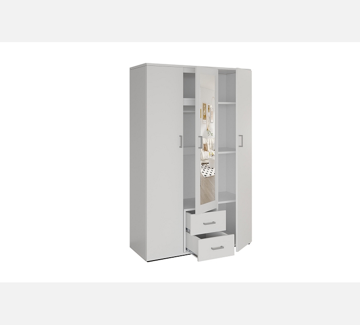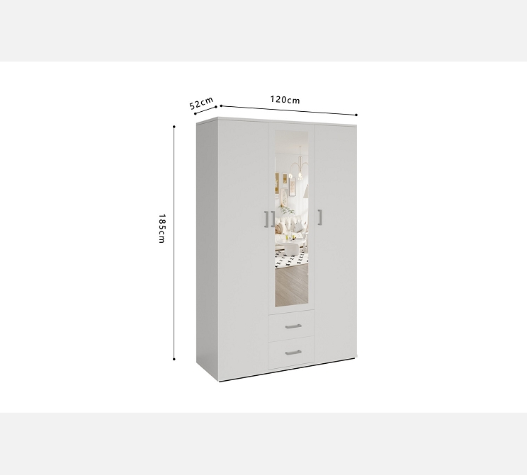 L 120 / P 52 / H185||Mélaminé blanc, miroir.