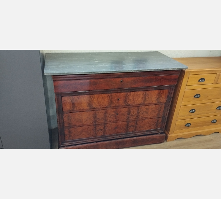 Commode secrétaire Louis Philippe, dessus marbre, 5 tiroirs - Chambre - Meubles - Destock Occaz