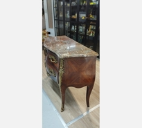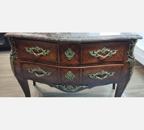 JOLIE COMMODE 3 TIROIRS, STYLE LOUIS XV, DESSUS MARBRE ET ORNEMENTS BRONZE DORÉ