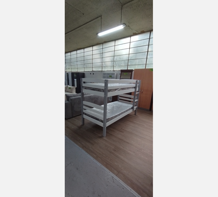 Lit superposés en bois gris/blanc 90/200 cm vendu sans matelas.