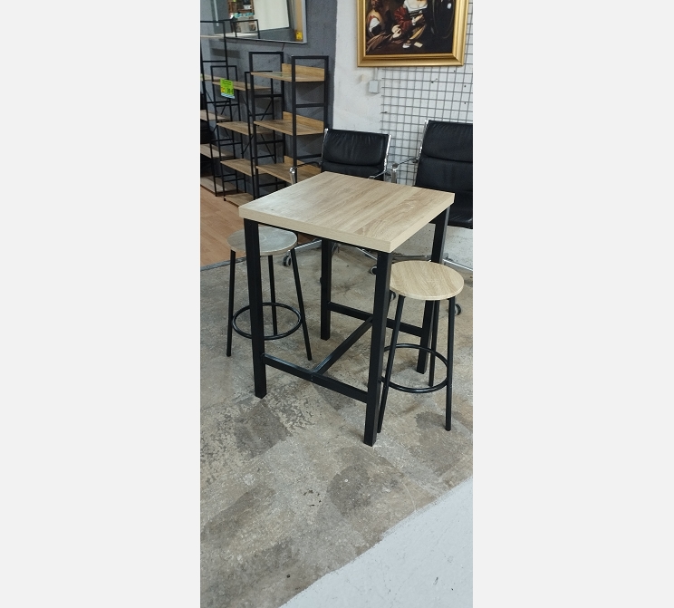 Mange debout avec 2 tabourets dessus style chêne griffé et pieds noirs.