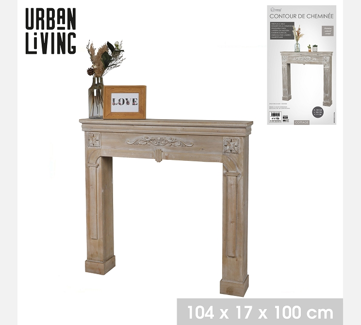 'COTTAGE' CONTOUR DE CHEMINEE EN BOIS NATUREL CERUSE 104X17XH100CM