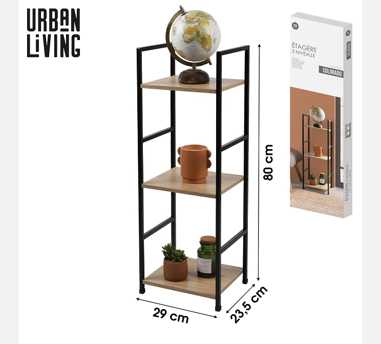 L 29 / P 23.5 / H 80 cm||Métal et aggloméré.