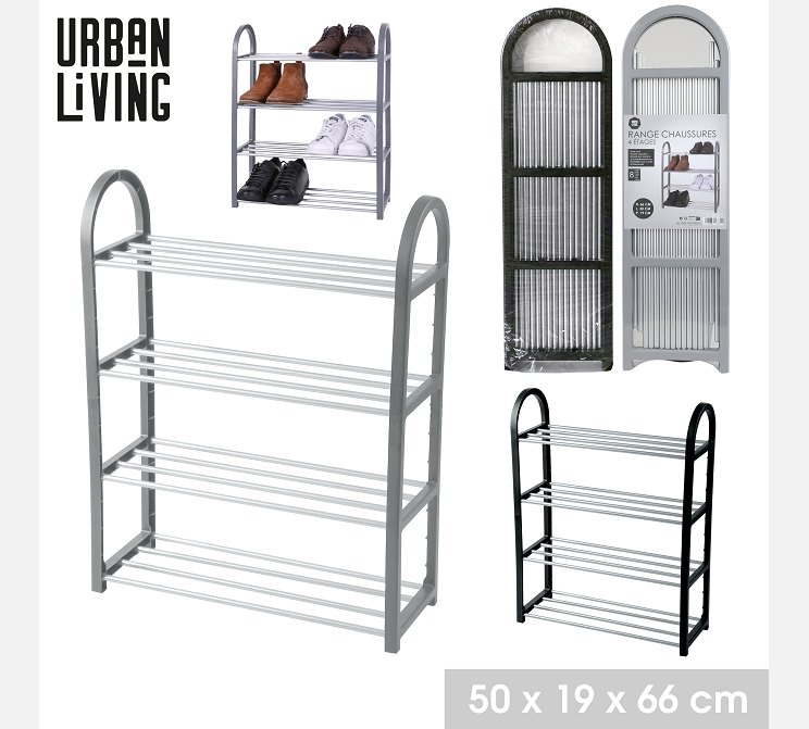 ETAGERE RANGE CHAUSSURES 4 ETAGES 8 PAIRES 50X19XH66CM