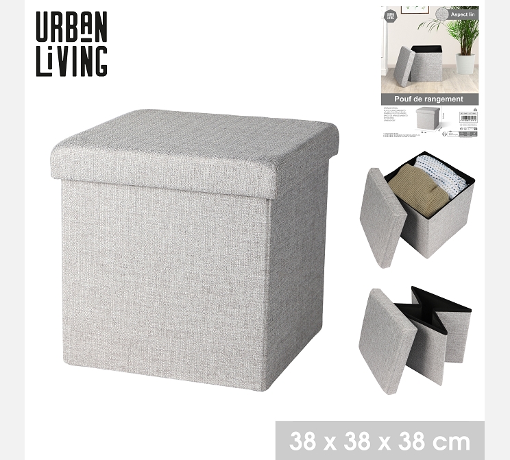 KUBE 'ASPECT LIN' POUF DE RANGEMENT PLIABLE GRIS 37,5XH37,5CM