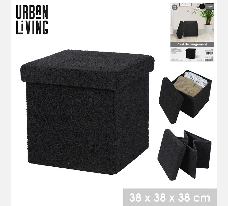 KUBE 'TEDDY' POUF DE RANGEMENT PLIABLE NOIR 37,5XH37,5CM