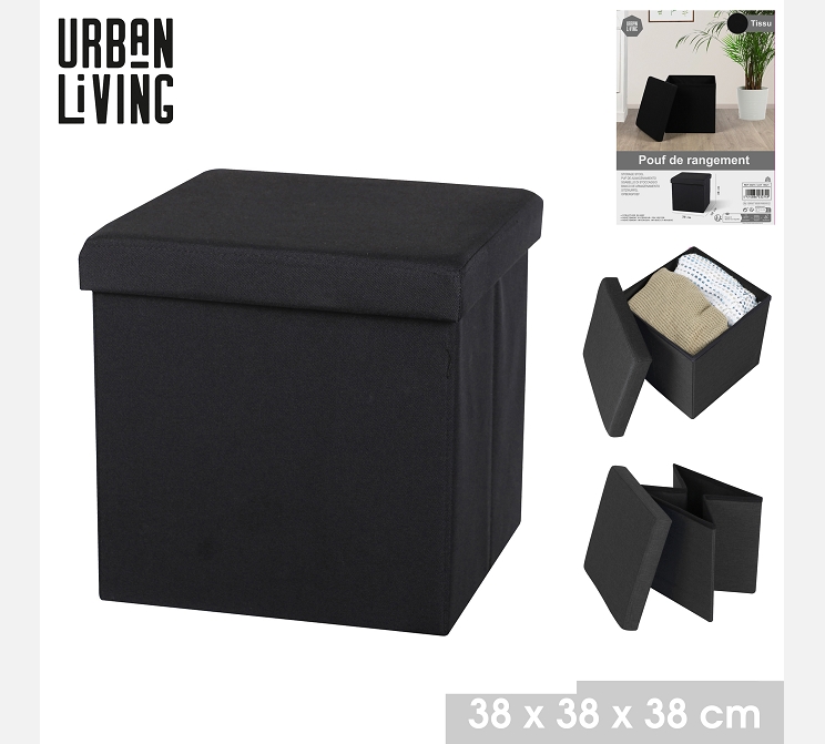 KUBE 'TISSU' POUF DE RANGEMENT PLIABLE NOIR 37,5XH37,5CM