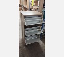 MEUBLE À CHAUSSURES BLANC ET CHÊNE, 3 PORTES.