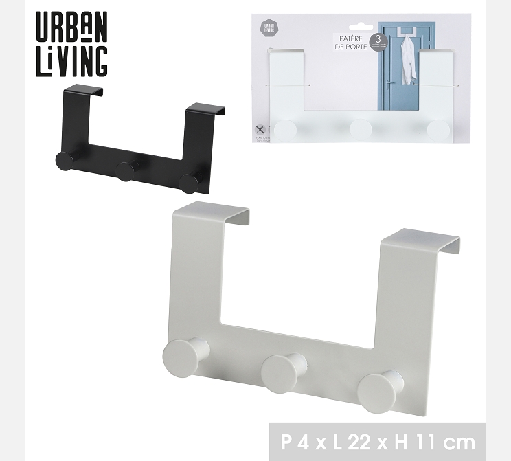Patère de porte 3 crochets. Noir ou blanc.