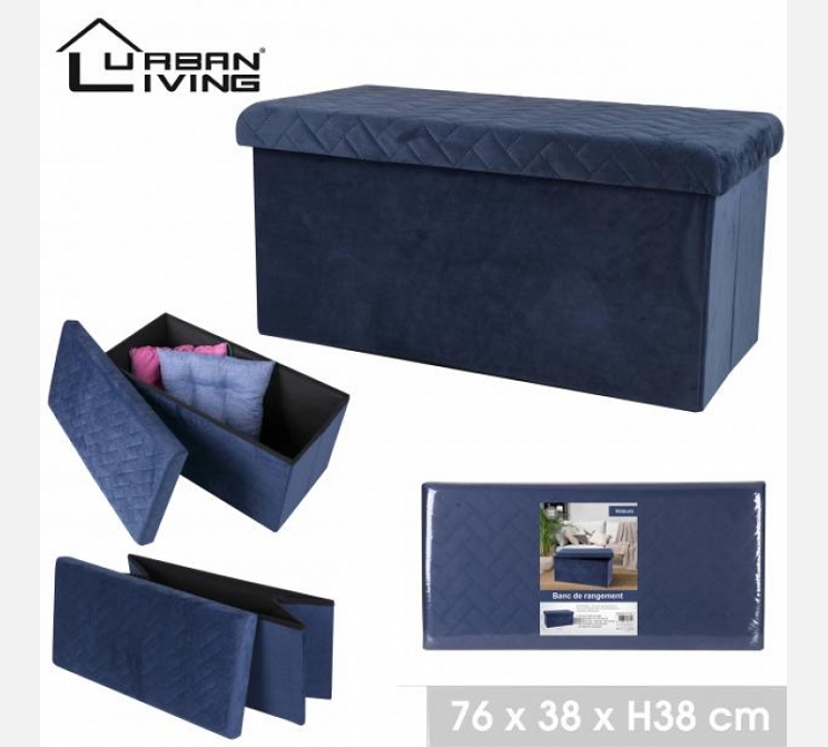 Pouf de rangement rectangulaire pliable KUBE en velours bleu.