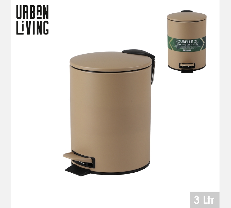 'DESERT' POUBELLE SDB 3L AVEC PEDALE ET FERMETURE SILENCIEUSE D17XH23CM