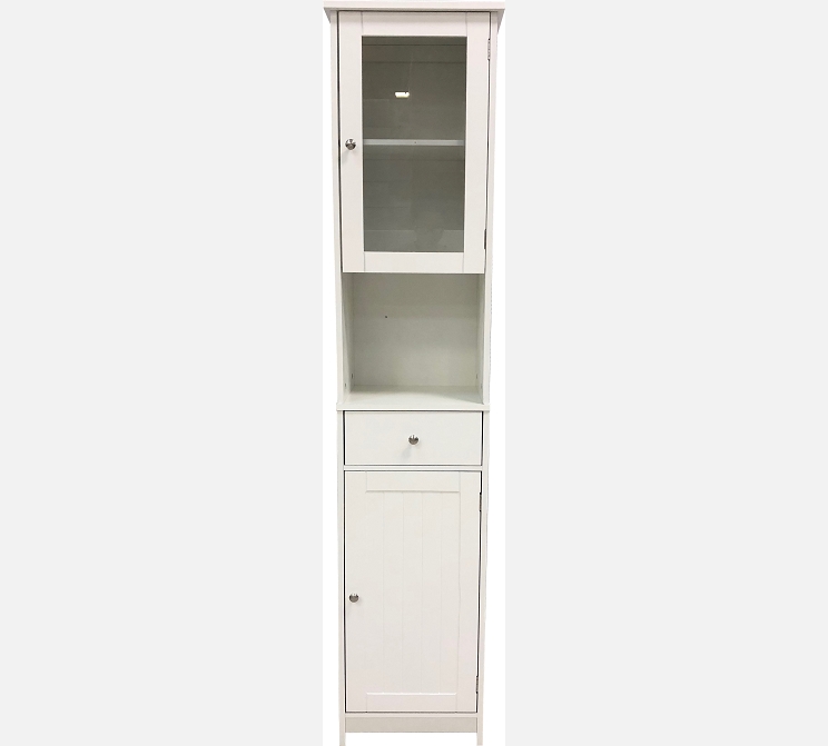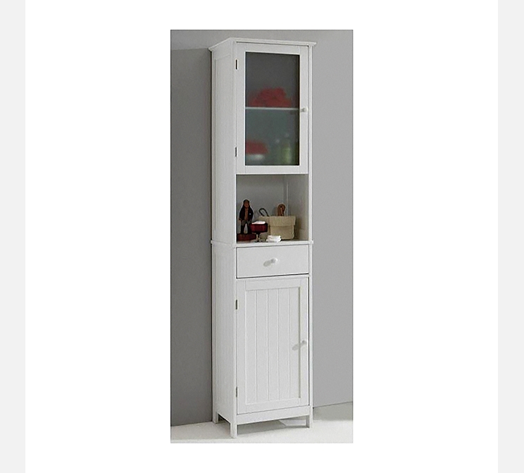 Dimensions : L 40 / P 30 / H 180 cm||Composition : MDF, pin massif, tiroir sur rails à roulettes, poignées en métal.