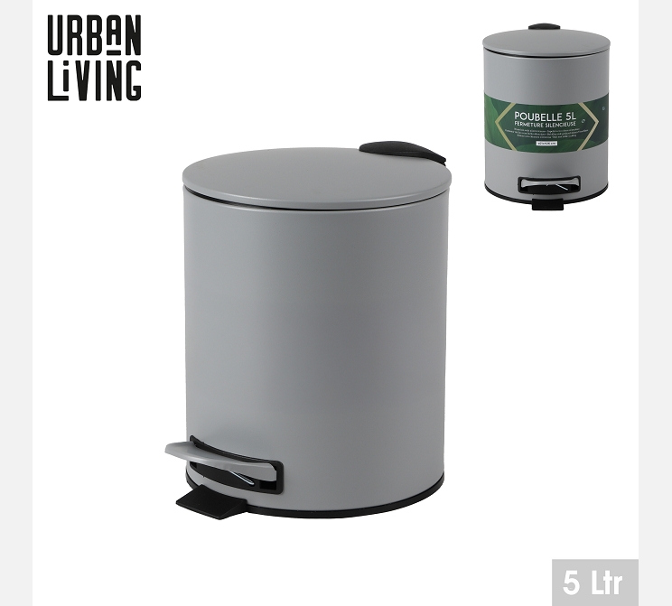 'NOMAD GRAY' POUBELLE SDB 5L AVEC PEDALE ET FERMETURE SILENCIEUSE D21XH26CM