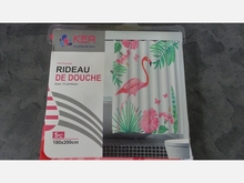 RIDEAU DE DOUCHE FLAMANT ROSE 180/200 CM AVEC 12 ANNEAUX.