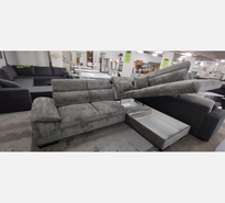2M.CREM95. CANAPÉ D'ANGLE BANGKOK CONVERTIBLE, COFFRE, TISSU GRIS FONCÉ.