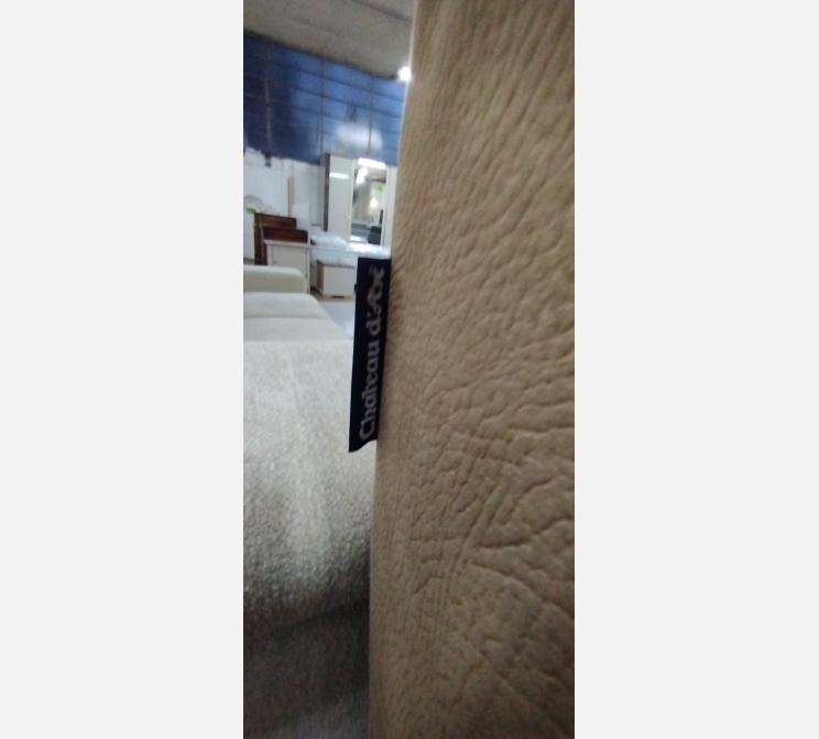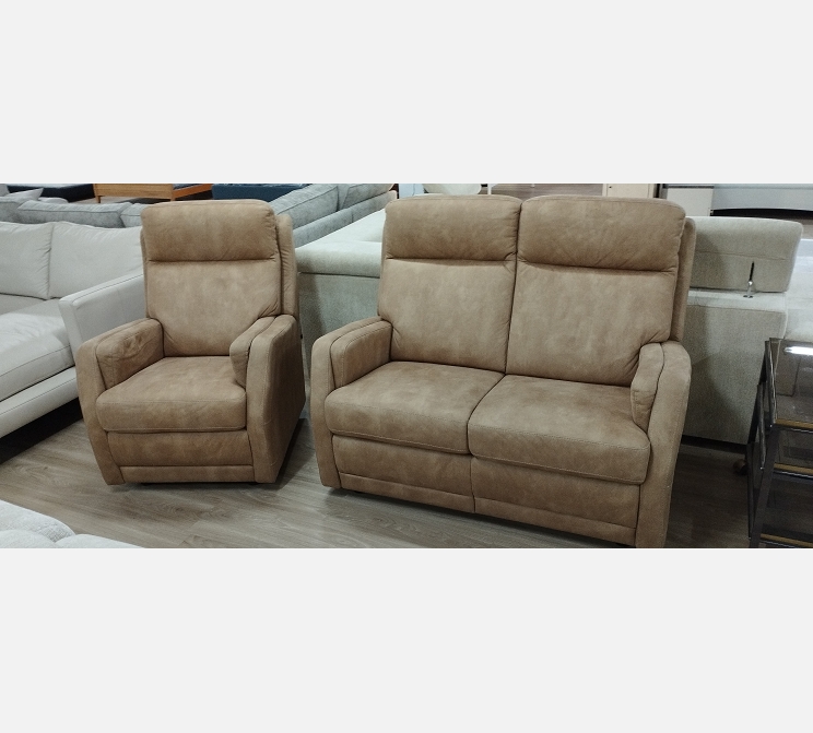 Bel ensemble, canapé 2 places avec 1 fauteuil en tissu microfibre taupe de chez Château dAx. Made in Italy.
