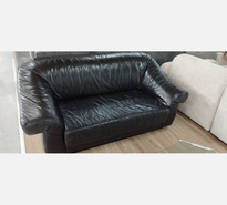 CANAPÉ 2 PLACES EN CUIR NOIR.
