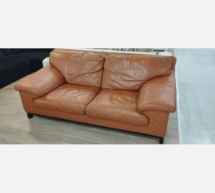 Canapé 2 places Roche Bobois en cuir cognac.