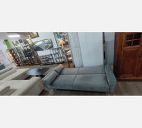 CANAPÉ 3 PLACES CONVERTIBLE CLIC-CLAC EN VELOURS GRIS CLAIR.