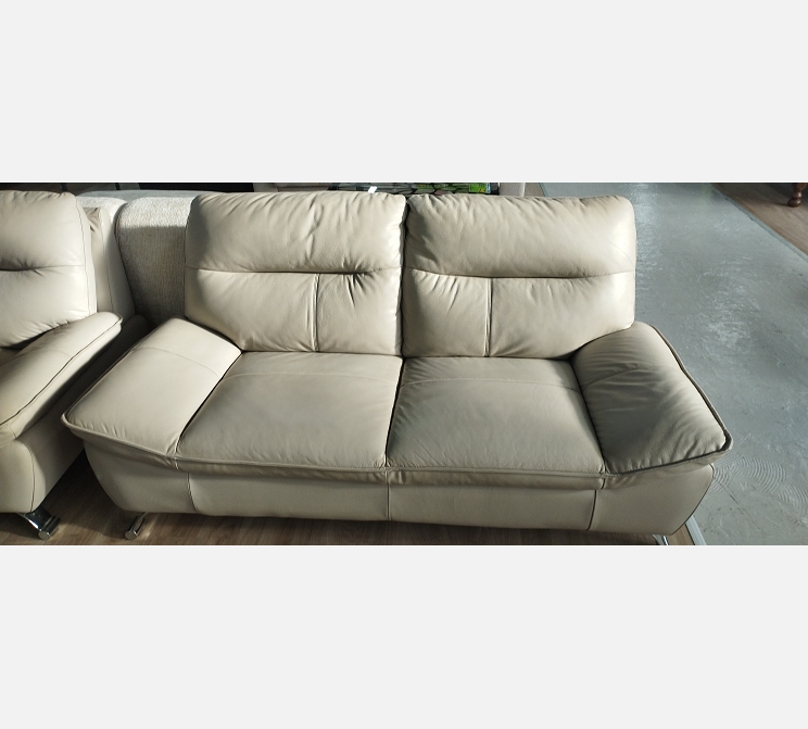 Ensemble en cuir couleur taupe, canapé 3 places et canapé 2 places