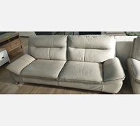 ENSEMBLE EN CUIR COULEUR TAUPE, CANAPÉ 3 PLACES ET CANAPÉ 2 PLACES