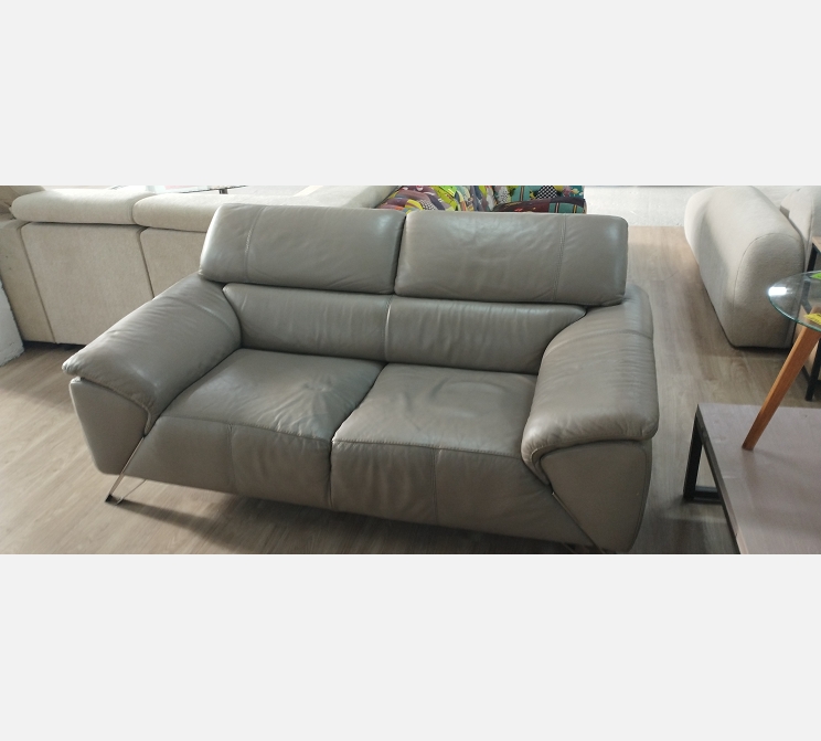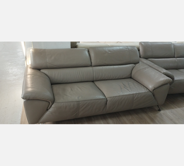 Ensemble en cuir couleur taupe, canapé 3 places et canapé 2 places