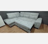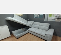 M2.CREM81. CANAPÉ D'ANGLE BANGKOK CONVERTIBLE, COFFRE, TISSU GRIS CLAIR.