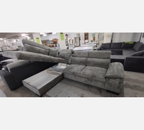 M2.CREM95. CANAPÉ D'ANGLE BANGKOK CONVERTIBLE, COFFRE, TISSU GRIS FONCÉ.