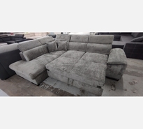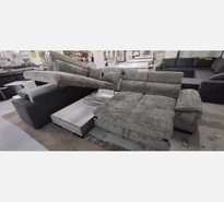 M2.CREM95. CANAPÉ D'ANGLE BANGKOK CONVERTIBLE, COFFRE, TISSU GRIS FONCÉ.