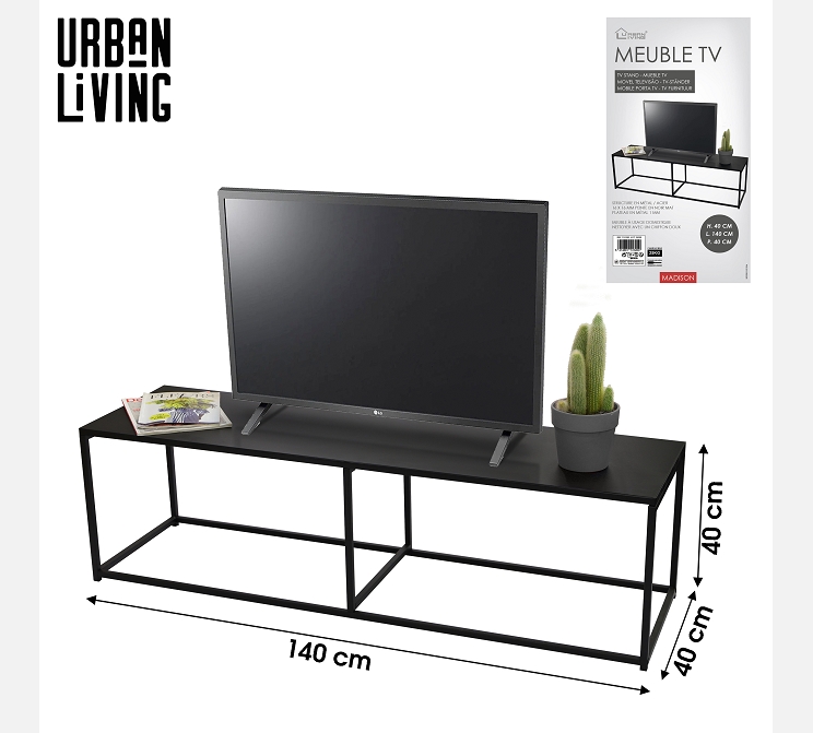 'MADISON' MEUBLE TV EN METAL NOIR 140X40XH40CM