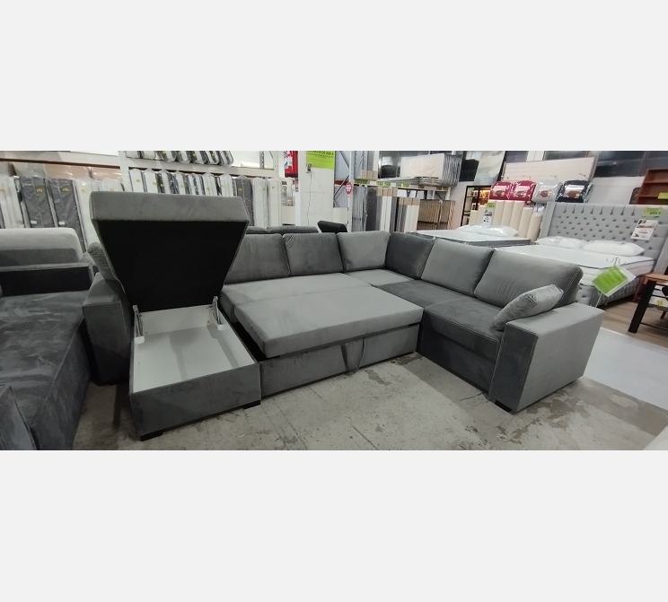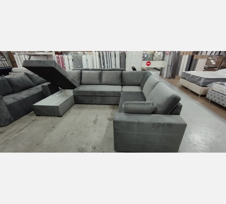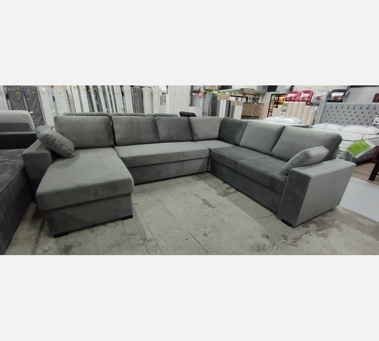 L 320 / l 250/ P 90 / méridienne 170 cm. ||Structure en bois massif et isorel, ressorts sangles, polyuréthane.