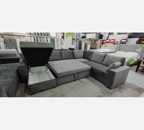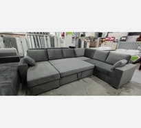 MG.OPÉANT CANAPÉ PANORAMIQUE ATOS, VELOURS, GRIS, CONVERTIBLE, RÉVERSIBLE,COFFRE