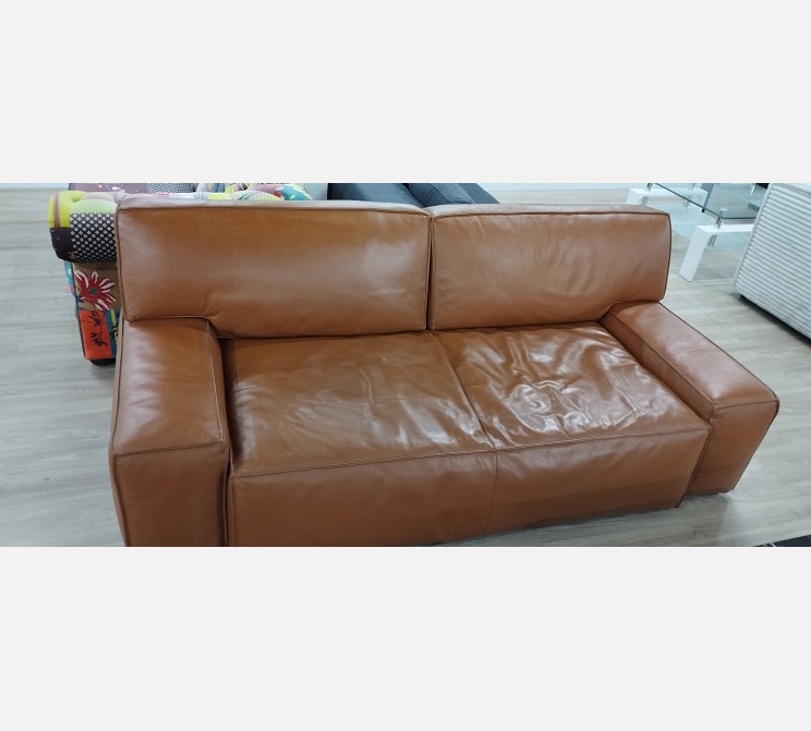 Canapé 2 places en cuir marron Cassina (très haut de gamme). Made In Italy. Canapé comportant des traces de stylo.