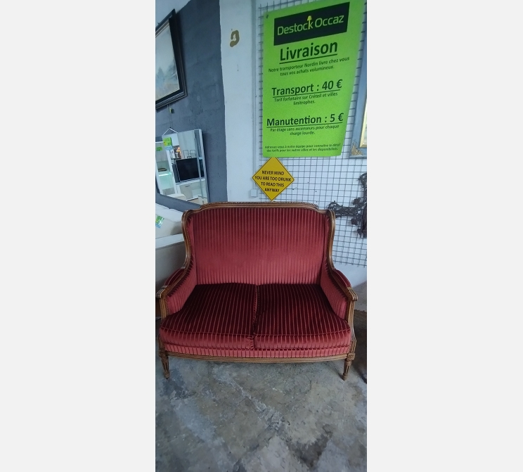 Banquette 2 places style Louis XVI en velours bordeaux.