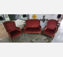 BANQUETTE 2 PLACES STYLE LOUIS XVI EN VELOURS BORDEAUX.