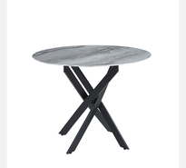 TABLE RONDE JESSICA DESSUS VERRE STYLE MARBRE GREIGE ET PIEDS NOIRS.DT25MEMGG100
