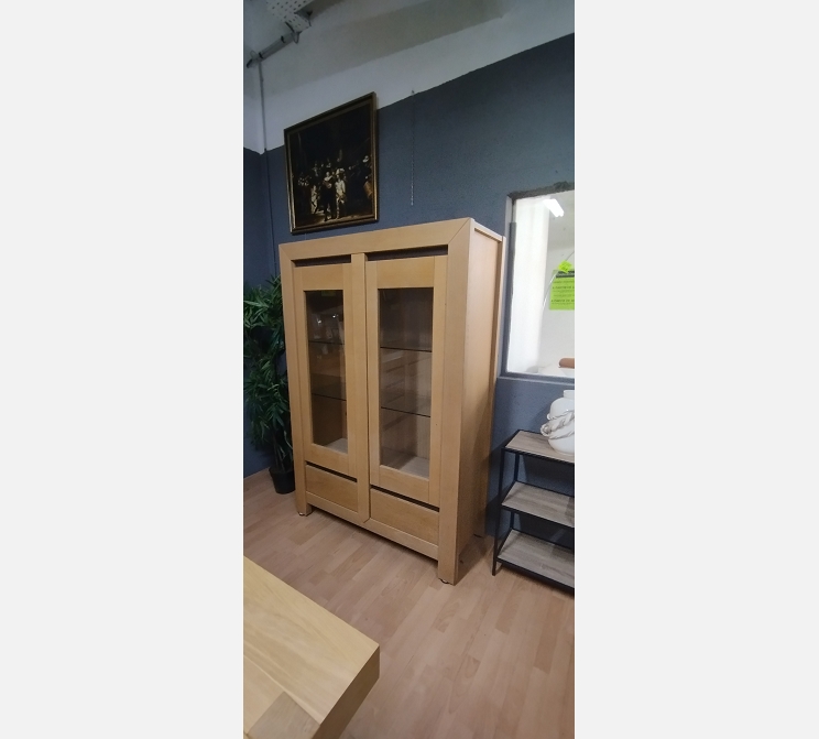 Vitrine 2 portes 2 tiroirs en chêne massif